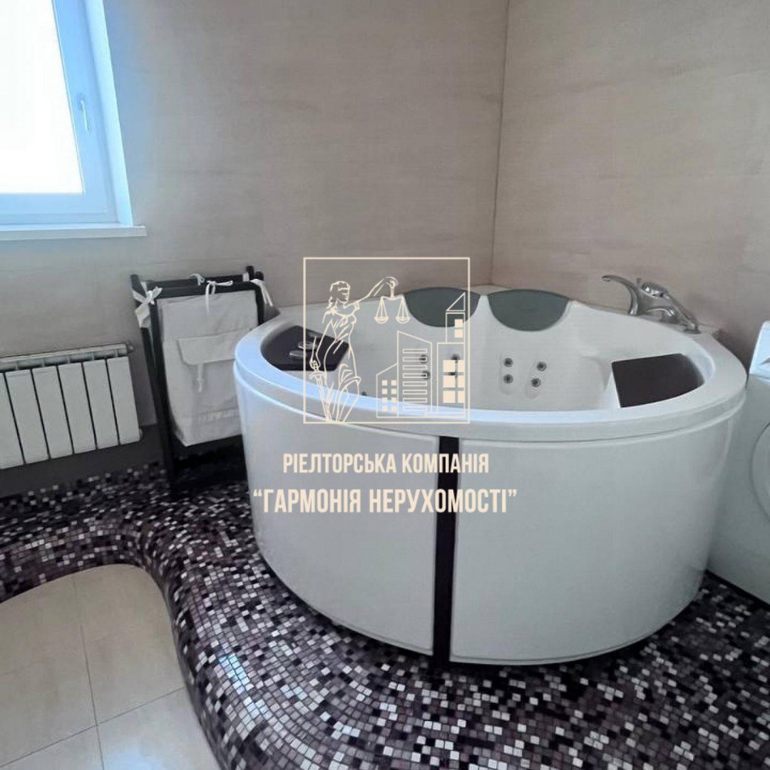 - великий санвузол з двомісною круглою гідромасажною ванною;