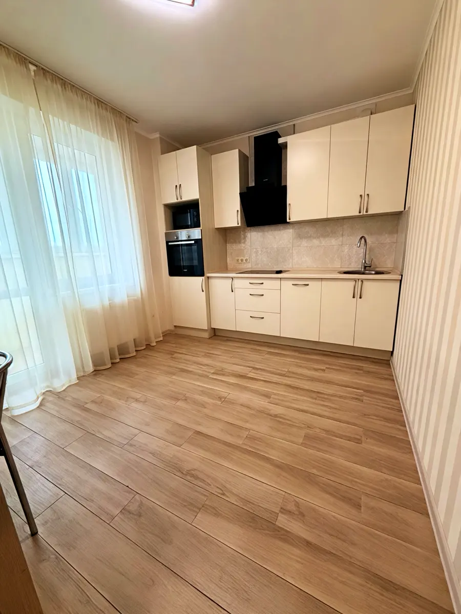 У квартирі продумане планування: простора кімната з великими вікнами, повністю облаштована кухня з технікою, сучасний санвузол із душовою кабіною, окрема робоча зона, а також велика гардеробна кімната.